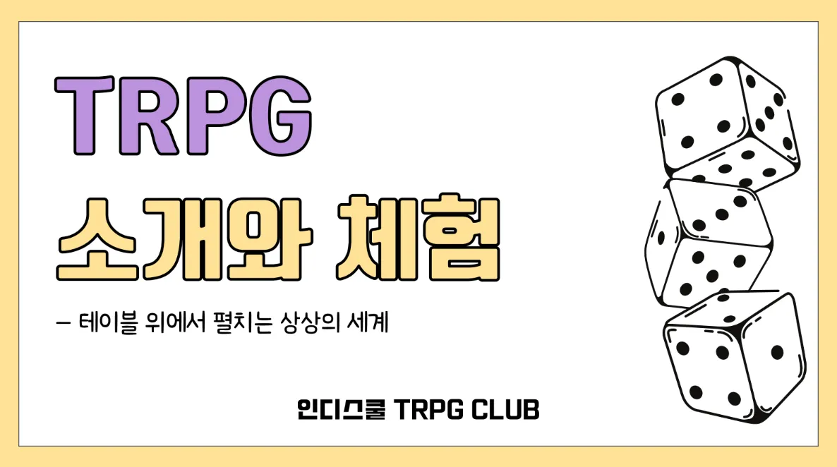 인디스쿨 TRPG 클럽은 온·오프라인에서 TRPG의 즐거움을 경험하고 공유하는 교사 공동체입니다. 초보 선생님을 위한 맞춤형 입문 세션부터 숙련자를 위한 심화 플레이까지 폭넓은 기회를 제공합니다. 나아가 TRPG 플레이 경험을 교실 현장에 생동감 있게 구현할 방안을 함께 고민하고 소통하며, 수업의 새로운 가능성을 연구합니다.