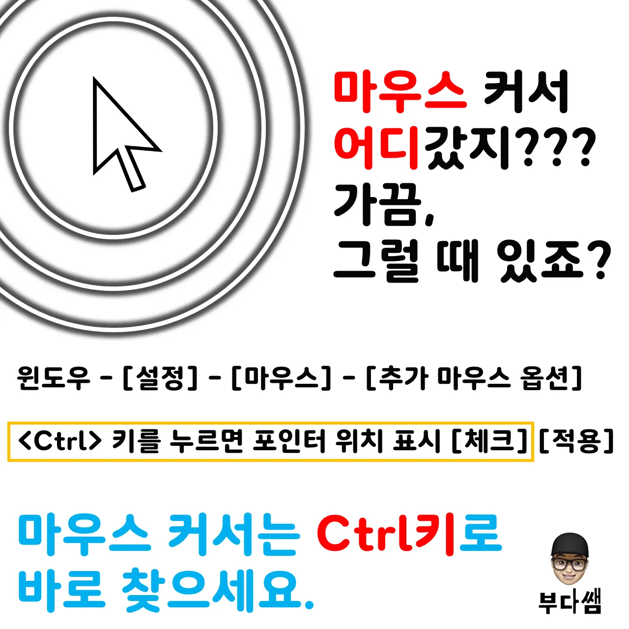 마우스 커서 찾으라 휘적휘적 하지말고 우아하게 버튼 하나로 찾으세요.