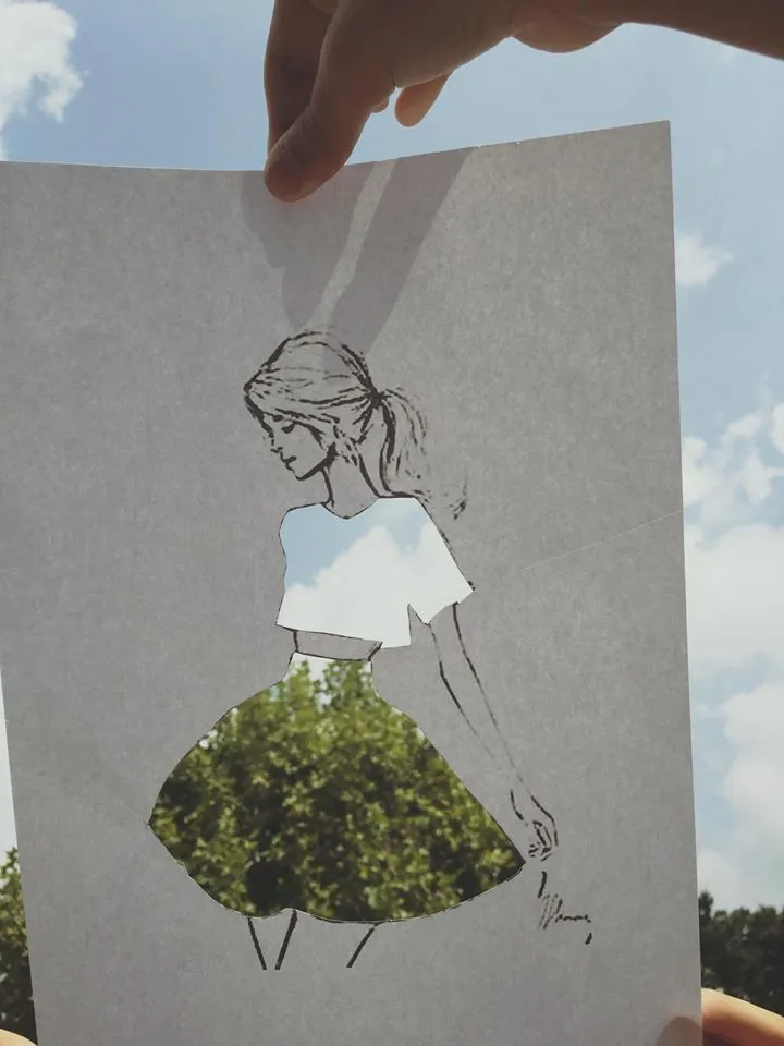 "풍경으로 채우기"라는 활동명은 아이들과 함께 붙였습니다.컷아웃 드레스(CUT-OUT-DRESS)기법 이라고도 하더군요.